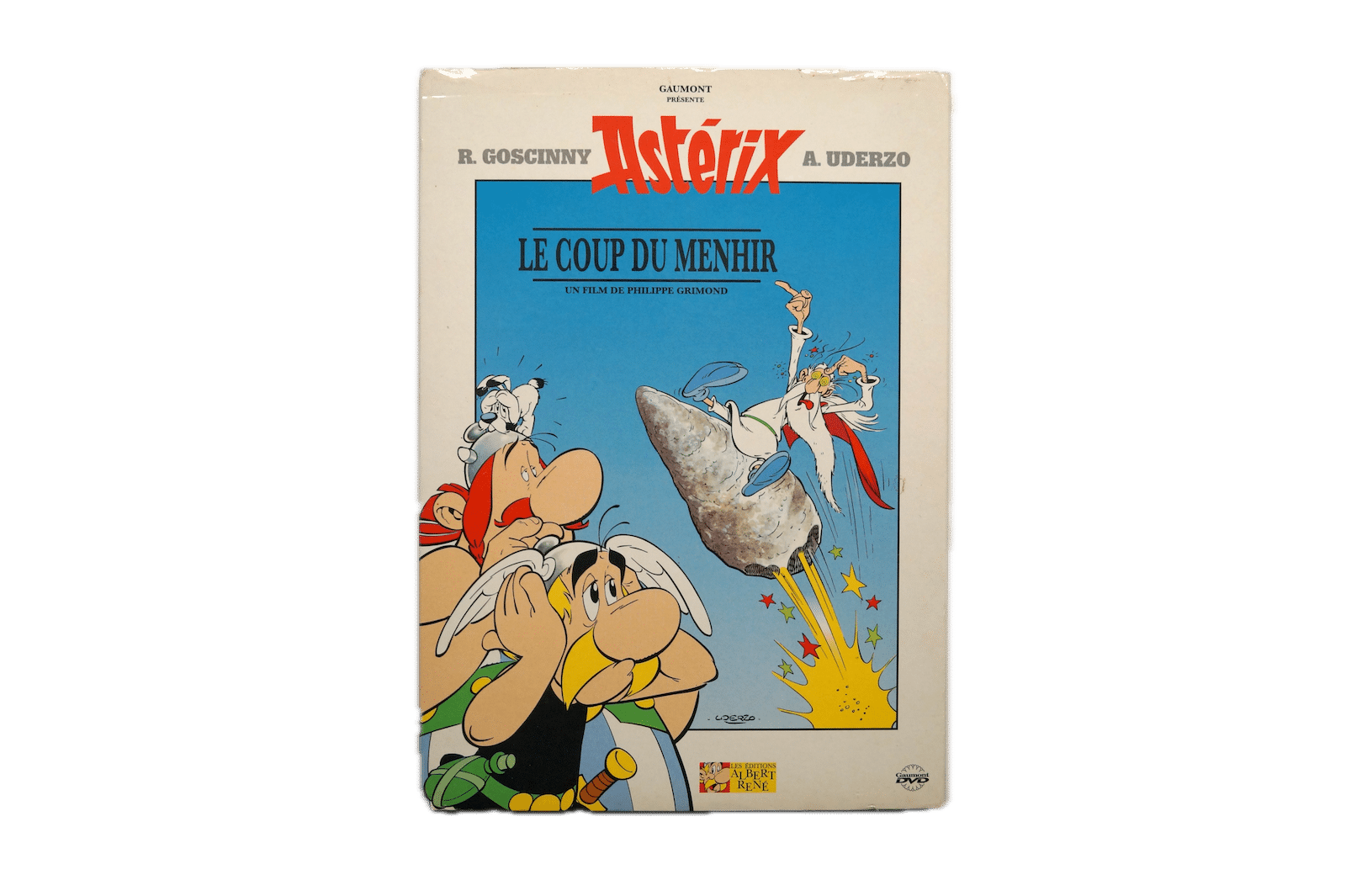 Oplev den farverige og underholdende galliske animationsfilm Asterix – Le Coup du Ménhir på DVD (Brugt) – Fransk version med slipcover.