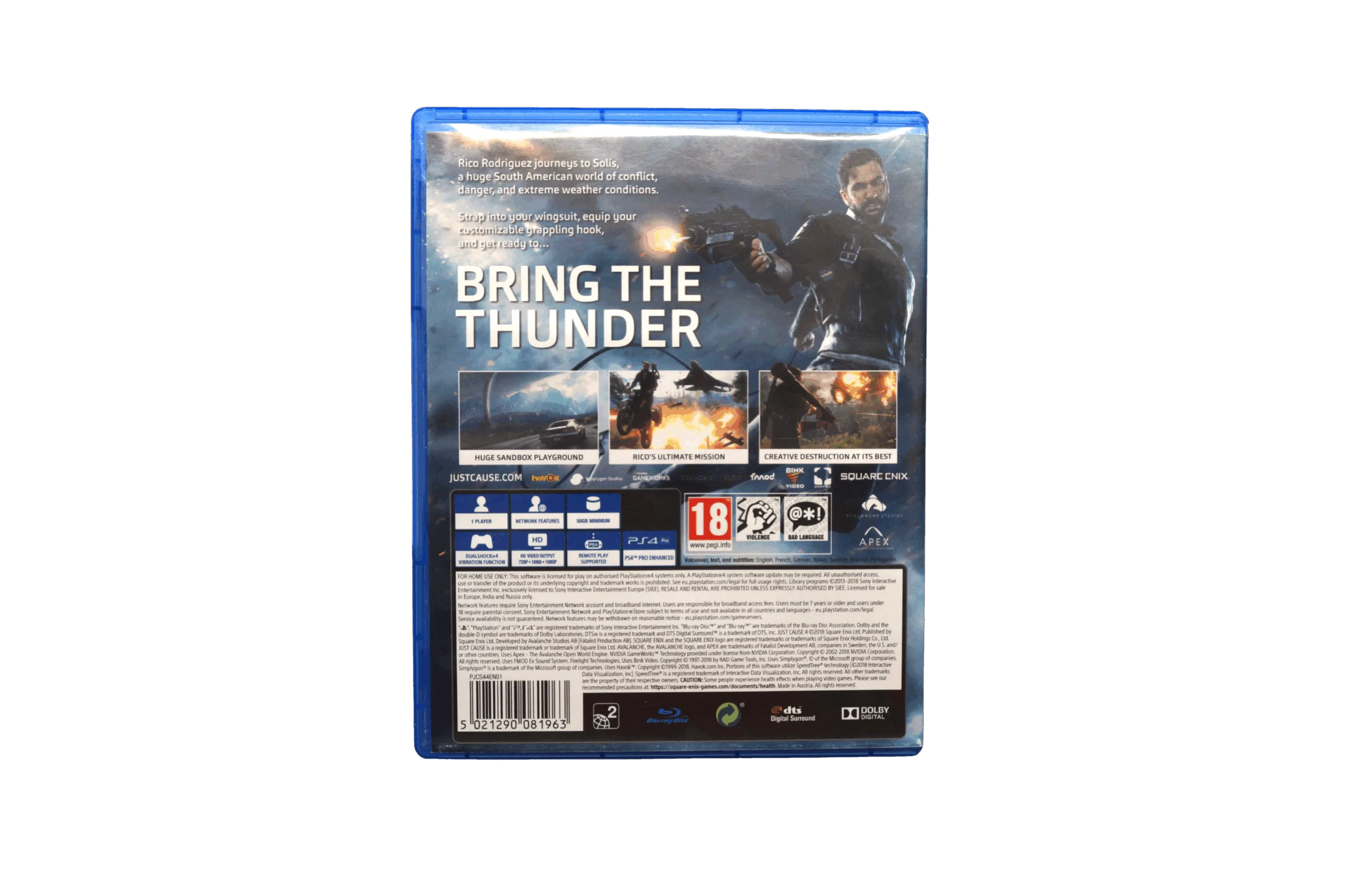 Et action-eventyr fra Avalanche Studios og Square Enix, udgivet 4. december 2018 . Tag rollen som Rico Rodríguez, infiltrér nationen Solís og brug wingsuit, grappling hook og eksplosive gadgets til at skabe kaos i en åben verden påvirket af voldsomme vejrhændelser .