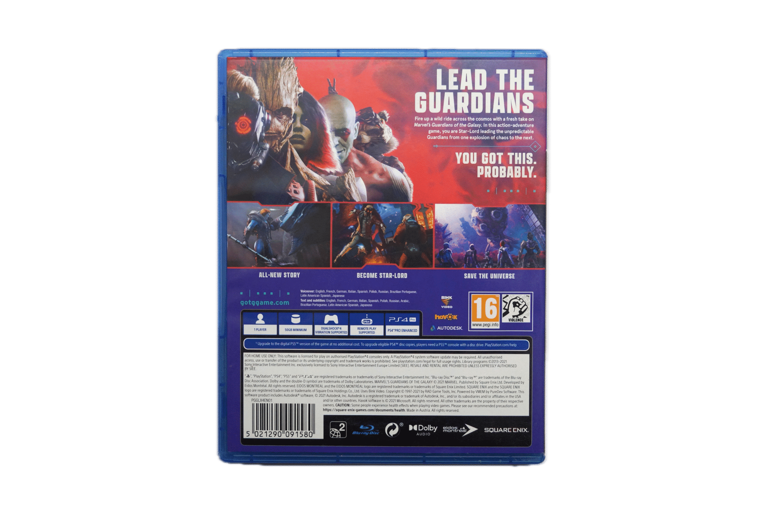Sving dig ud i universet med Marvel’s Guardians of the Galaxy på PS4 — en action-adventure oplevelse fyldt med humor, intens kamp og interaktive valg. I rollen som Star-Lord leder du holdet af eventyrlystne “misfits” gennem galaksen, navigerer diplomati, kampe og karakterudvikling i en original fortælling uafhængig af filmserien.