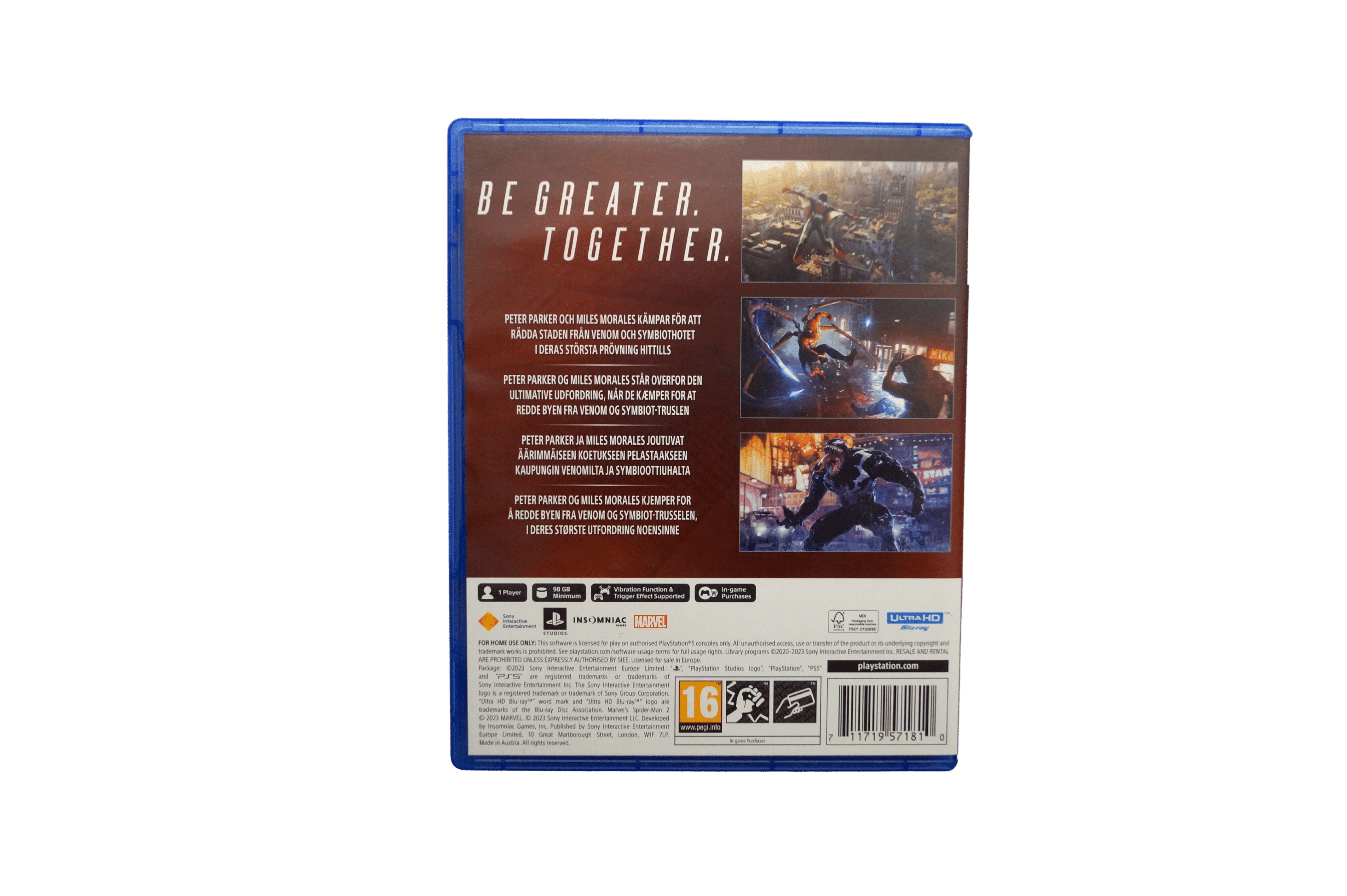 - Haptisk feedback skaber følelsen af Spider-Men’s kræfter i dine håndflader.