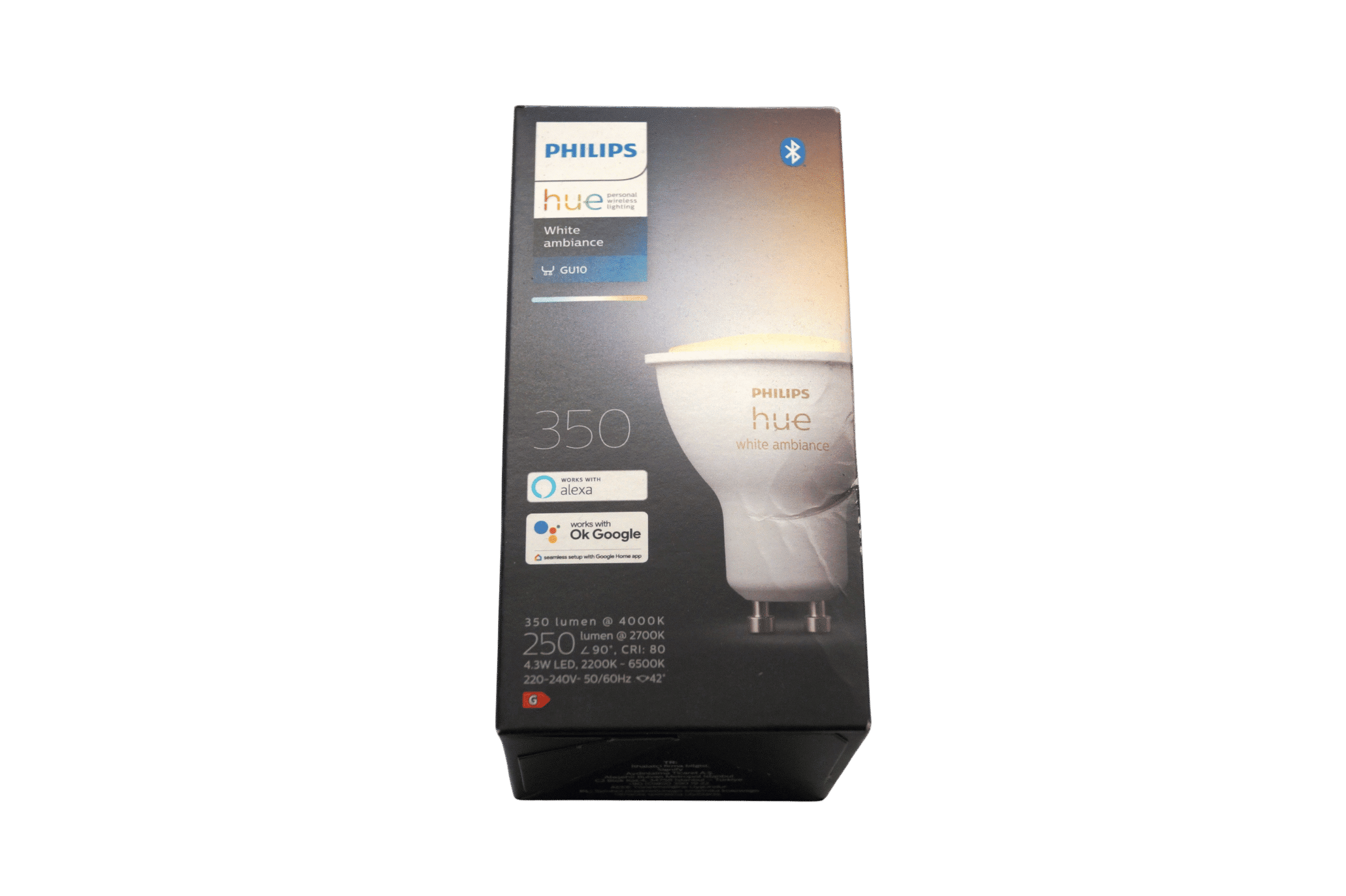 Skab det ideelle hvidlys til dit rum med Philips Hue White Ambiance GU10, en smart og fleksibel spotlight, ideel til spot- eller downlight-armaturer. Med justerbar hvidfarvetemperatur (2200–6500 K) og 350 lumen lysstyrke, kan du skabe alt fra varmt, hyggeligt lys til klart, køligt dagslys med ét smart klik.