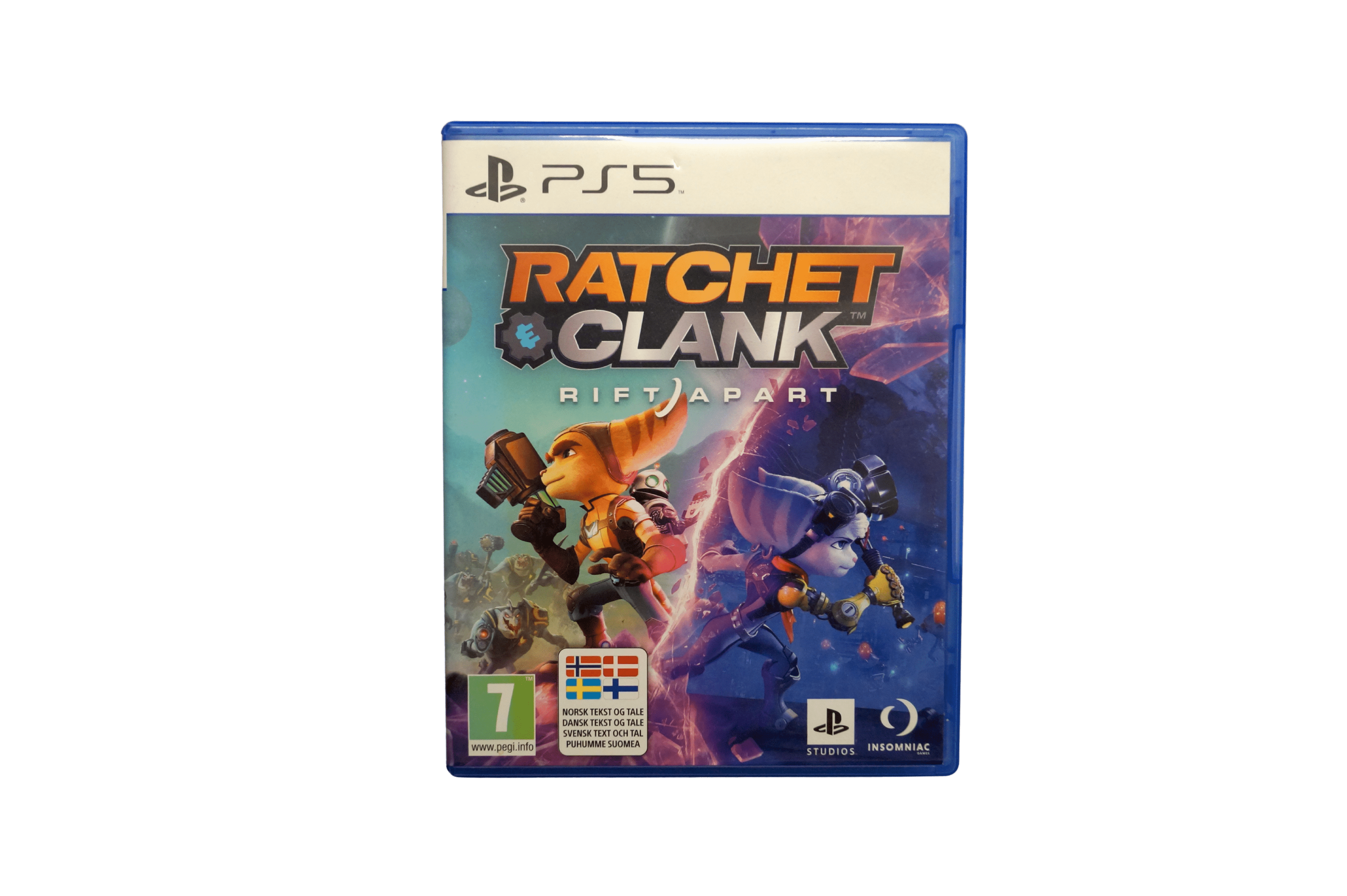 - Blændende grafikOplev et visuelt mageløst interdimensionelt eventyr i afsindigt højt tempo med alt, hvad PlayStation®5-konsollen kan byde på. Spillet er bygget helt fra bunden af det anerkendte studie Insomniac Games, og med den trådløse DualSense™-controller i hænderne vil du få helt nye actionoplevelser.