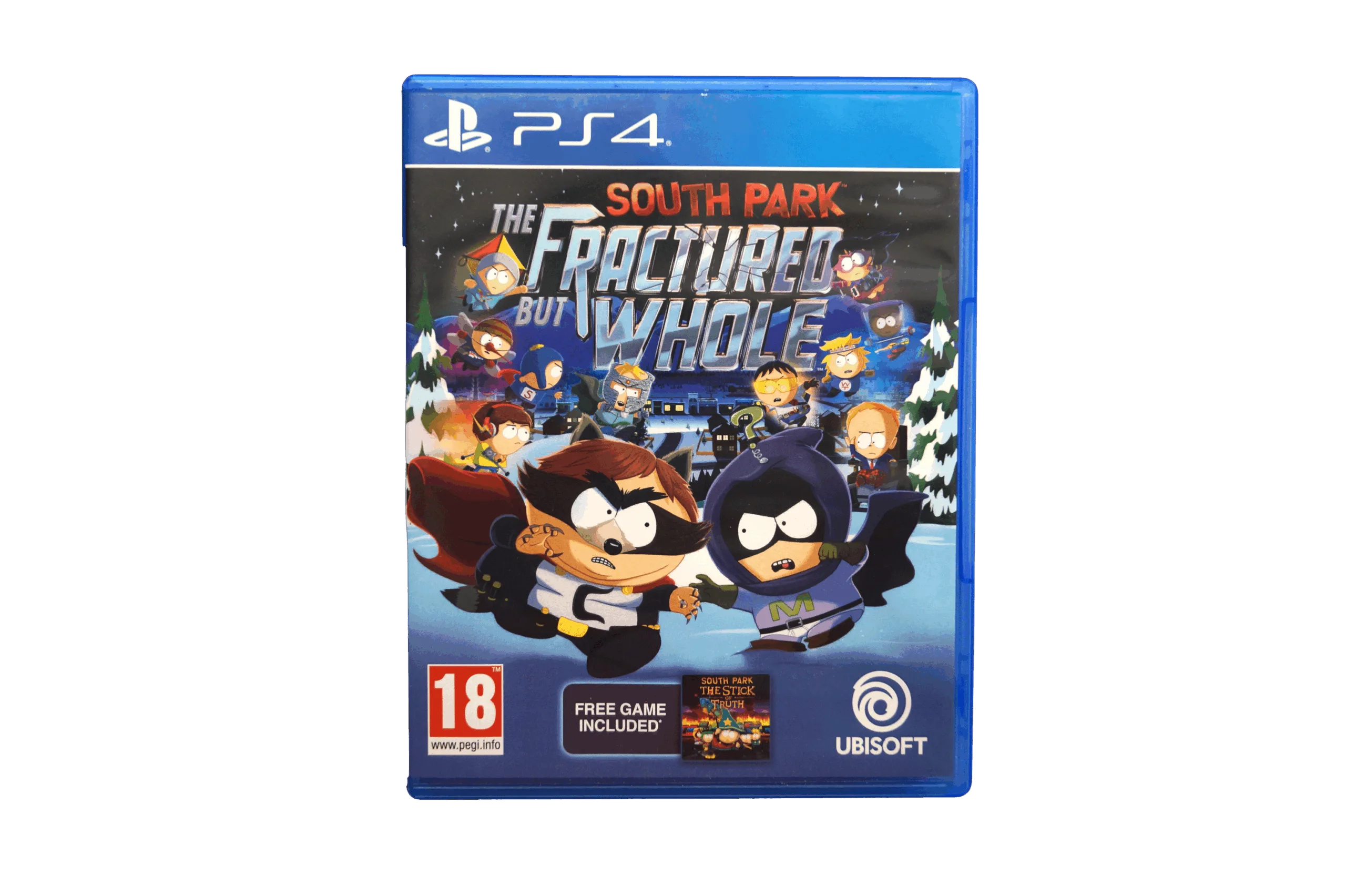 South Park The Fractured But Whole PS4 Brugt er et humoristisk rollespil baseret på den populære tv-serie South Park. Spillet fortsætter eventyret fra The Stick of Truth og giver dig endnu en gang mulighed for at træde ind i byen South Park som “The New Kid”.